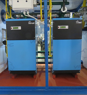 Такие котлы будут размещены в металлическом боксе с утепленными стенами. Размер короба может также быть подобран индивидуально. Бокс обеспечивает защиту оборудования от негативного воздействия окружающей среды и атмосферных осадков и позволяет эксплуатировать котлы при температуре от -45 до +40 градусов.