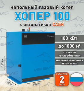 Котел «Хопер 100» с автоматикой САБК работает на энергии давления газа. Такое отопительное оборудование используется для отопления жилых и производственных помещений площадью до 1000 м². Автоматика российского производства САБК-М в котлах «Хопер 100» является современной системой безопасности, отличающейся простотой и надежностью работы.